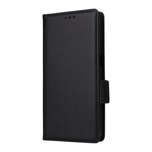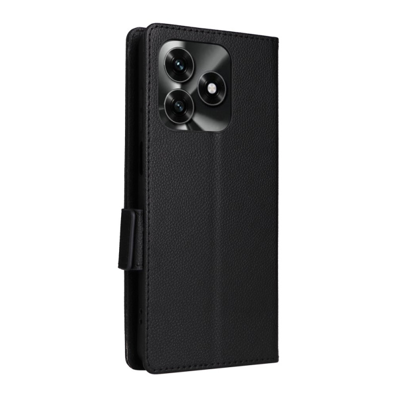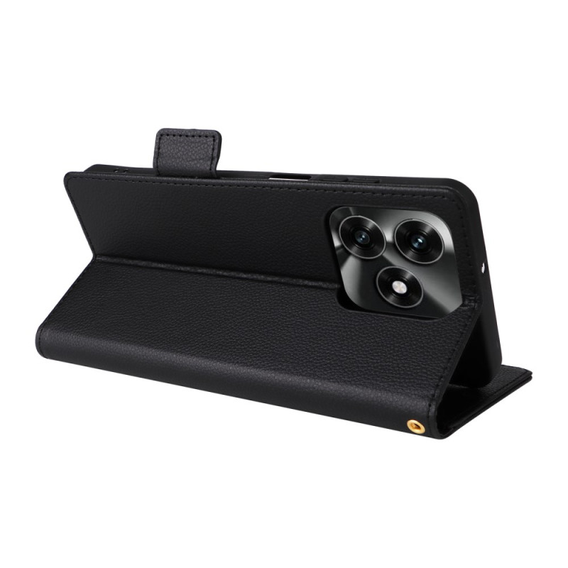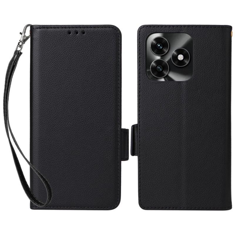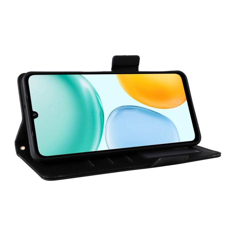 Étui portefeuille élégant avec texture litchi pour Honor X5c Plus. Fonction support mains libres, fermeture magnétique sécurisée et dragonne pratique. Comprend des emplacements pour cartes et espèces.