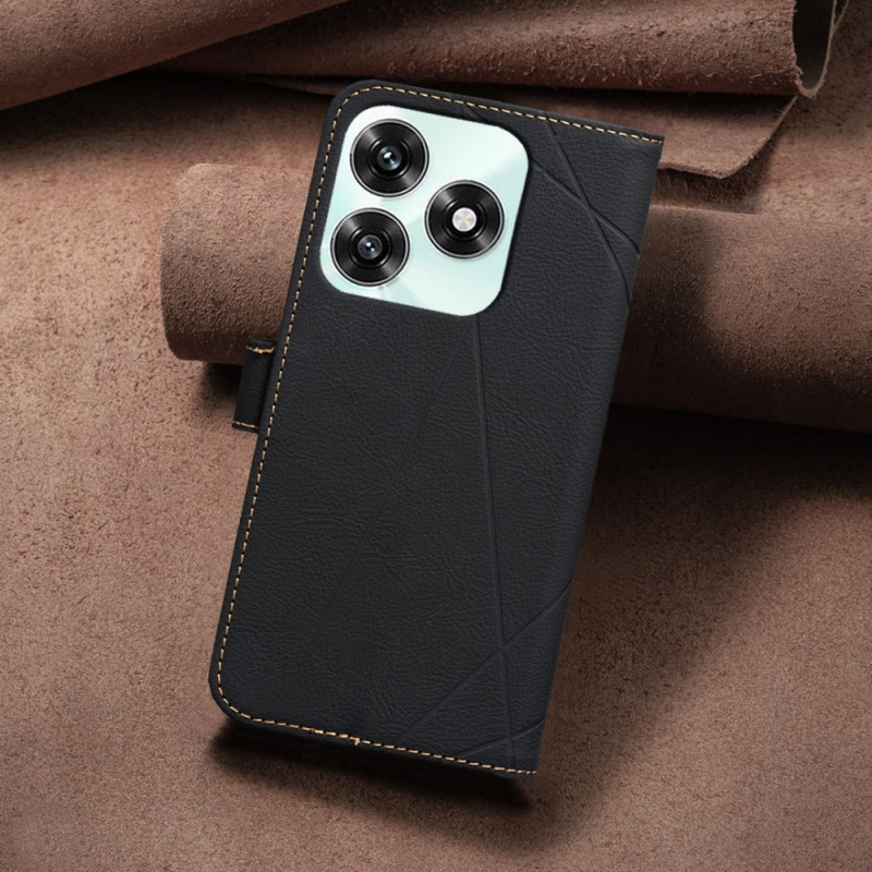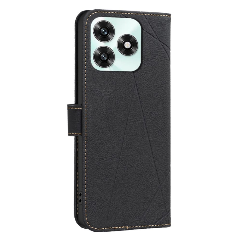 Protégez votre Honor X5c Plus avec élégance grâce à cet étui portefeuille en cuir PU premium. Design géométrique moderne, 3 emplacements pour cartes, technologie anti-RFID et support ajustable intégré pour une expérience mains libres optimale.