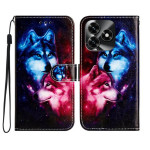 Étui portefeuille élégant avec motif de loups imprimé pour Honor X5c / X5c Plus. Design raffiné et fonctionnel avec support intégré, 3 emplacements pour cartes, fermeture magnétique sécurisée et dragonne détachable.