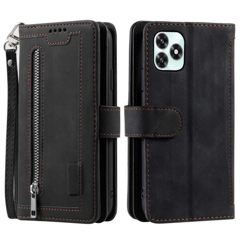 Étui portefeuille multifonction en cuir PU avec 9 emplacements pour cartes et fermeture éclair. Protégez votre téléphone avec style tout en gardant vos cartes et argent à portée de main. Fonction support intégrée et dragonne incluse.