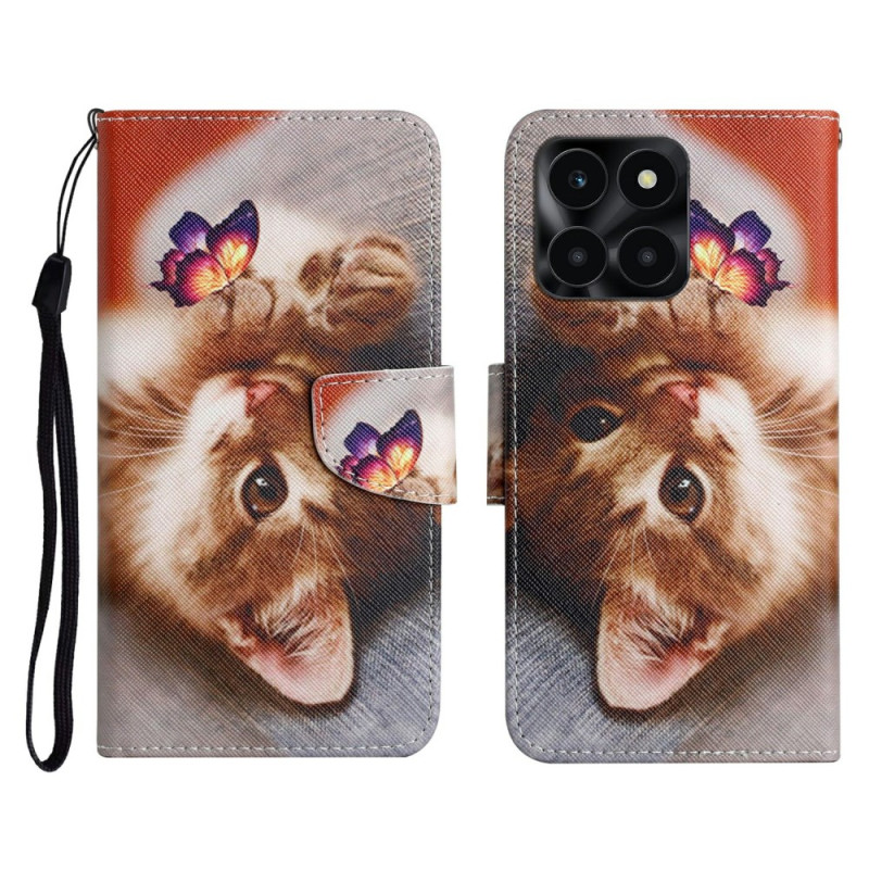 Protégez votre Honor X6c 4G / X6b 4G / X6a 4G / X5b / X5b Plus avec style grâce à cet étui folio élégant au motif chat papillon. Conception premium alliant cuir PU et coque TPU antichoc. Comprend 2 emplacements pour cartes, 1 poche pour billets, support ajustable et dragonne détachable...