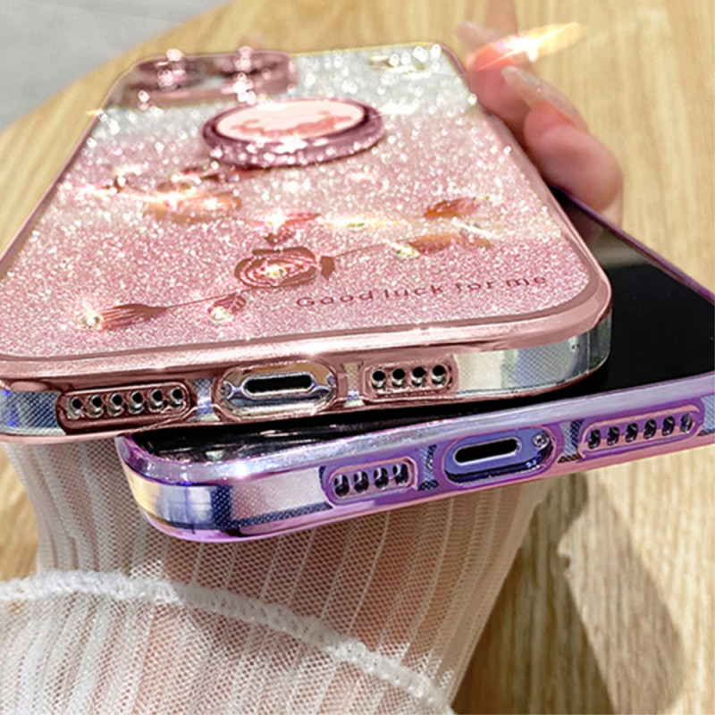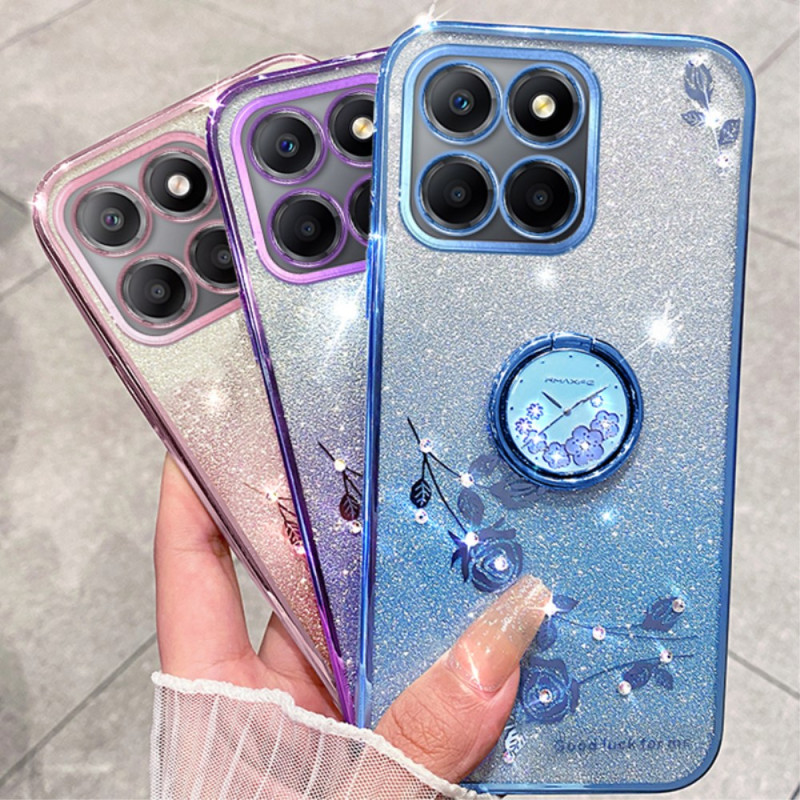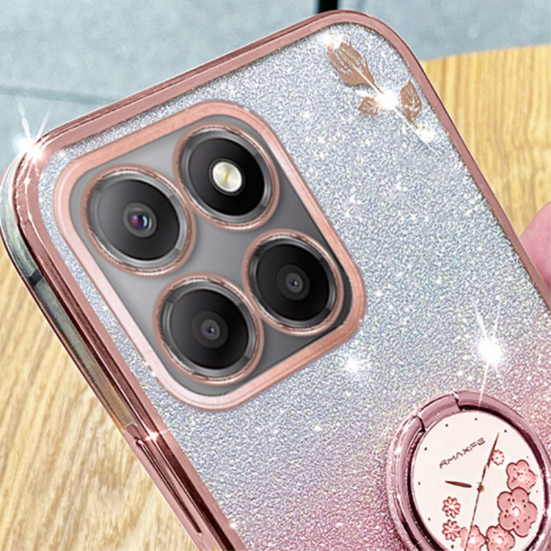Protégez votre Honor X6a 4G avec élégance grâce à cette coque TPU ornée de strass et d'une finition pailletée dégradée. L'anneau rotatif intégré offre une prise sécurisée et permet un visionnage mains libres pratique.