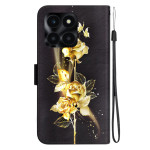 Élégant étui portefeuille en cuir synthétique pour Honor X6a 4G avec motif papillons dorés et roses. Doté d'une fonction support, de fentes pour cartes et d'une dragonne pratique. Protection complète et style raffiné pour votre smartphone au quotidien.