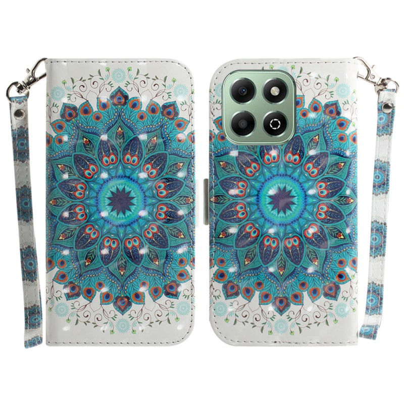 Protégez votre Honor X6b 4G avec élégance grâce à cet étui portefeuille au motif Couronne de Paon. Conception pratique avec support pliable, fentes pour cartes et compartiment pour espèces. Fermeture magnétique sécurisée et dragonne incluses.