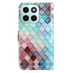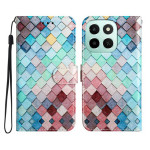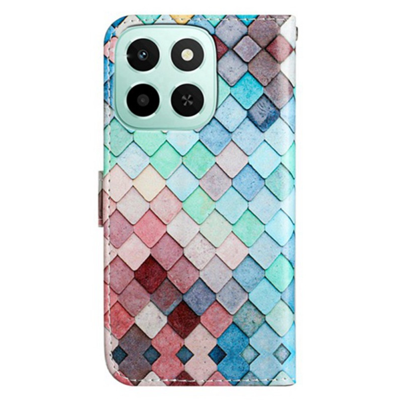 Étui portefeuille élégant en similicuir avec motif grille tendance. Doté de 3 emplacements pour cartes, d'une poche latérale et d'une fonction support multi-angles. Fermeture magnétique sécurisée et dragonne amovible incluse pour un transport facile...
