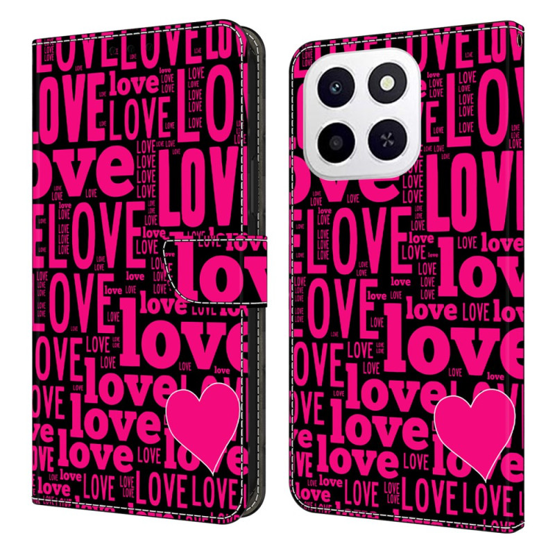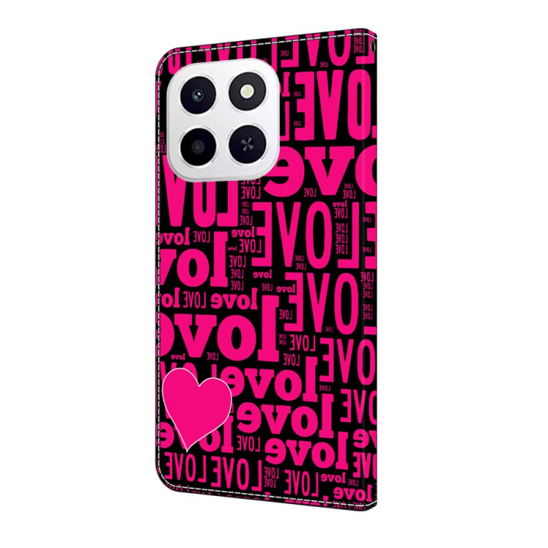 Protégez votre Honor X6c 4G avec élégance grâce à cet étui portefeuille au motif LOVE. Design à rabat avec support pliable, 2 fentes pour cartes et compartiment pour espèces. Fermeture magnétique sécurisée pour une protection complète.