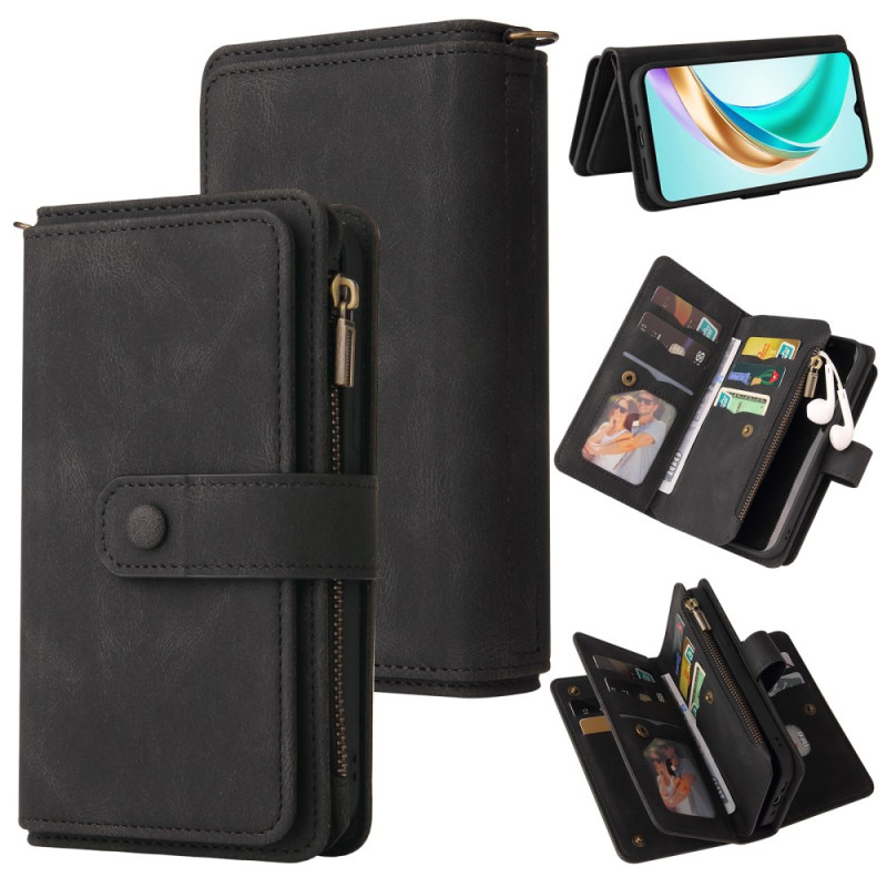 Protégez votre Honor X6c 4G / X6b 4G / X6a 4G / X5b / X5b Plus avec style grâce à cet étui portefeuille multifonction. Doté de 15 emplacements pour cartes, d'une poche zippée sécurisée et d'une dragonne détachable, il allie praticité et élégance pour votre quotidien.