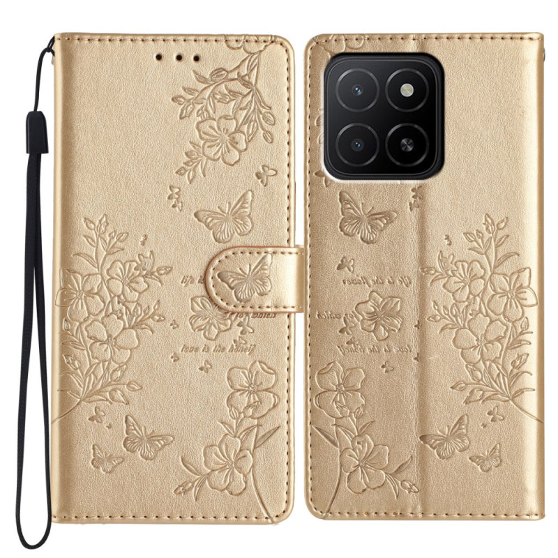 Protégez votre Honor X6c 4G avec élégance grâce à cet étui portefeuille en cuir synthétique. Design raffiné avec motif papillon et floral en relief, support intégré pour visionnage mains libres, multiples emplacements pour cartes et dragonne pratique.