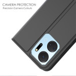 Étui élégant type portefeuille pour Honor X7a 4G avec texture soyeuse. Doté d'un porte-cartes pratique, d'un support intégré ajustable et d'une fermeture magnétique sécurisée. Protection complète contre les rayures et les chocs au quotidien.