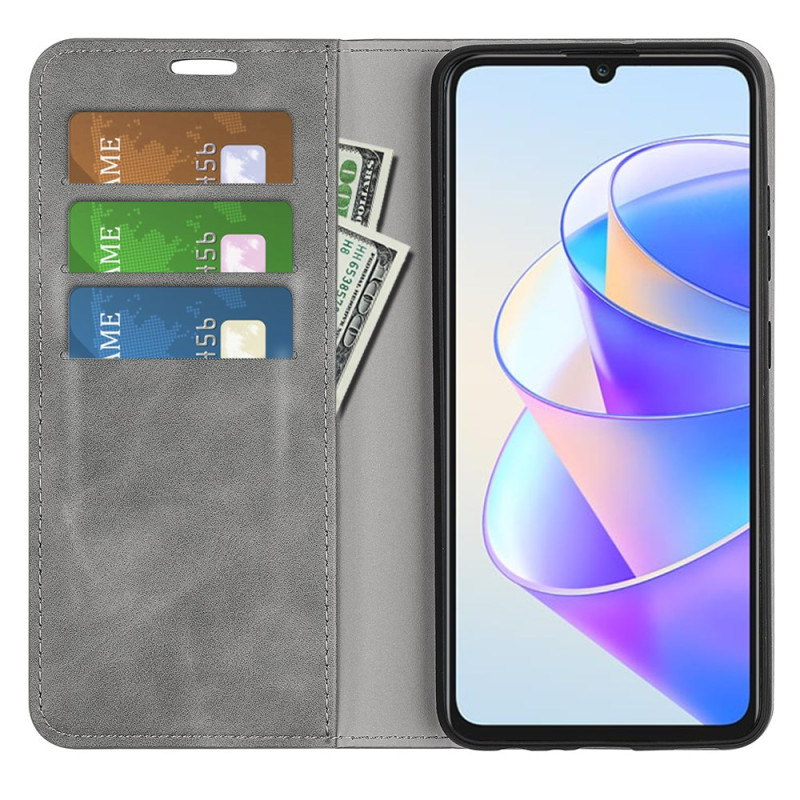 Étui portefeuille élégant pour Honor X7a 4G avec fermeture magnétique automatique, support intégré et multiples emplacements pour cartes. Profitez d'une protection complète et d'un design raffiné au toucher soyeux pour votre smartphone.