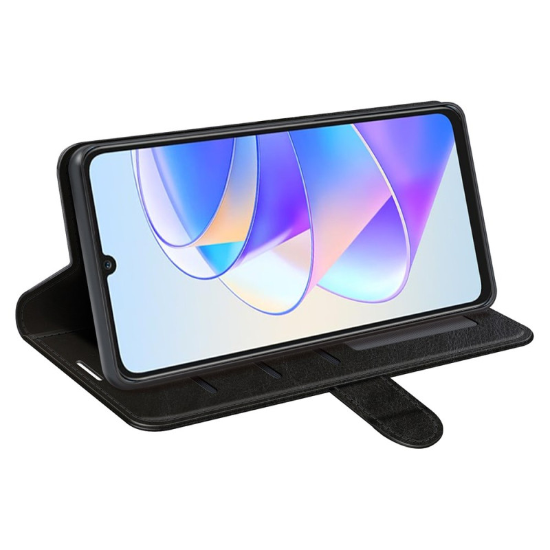 Étui portefeuille élégant en cuir PU avec texture grain pour Honor X7a 4G. Design à rabat avec support ajustable, porte-cartes intégrés et fermeture magnétique sécurisée. Protection intégrale contre les chocs et les rayures.