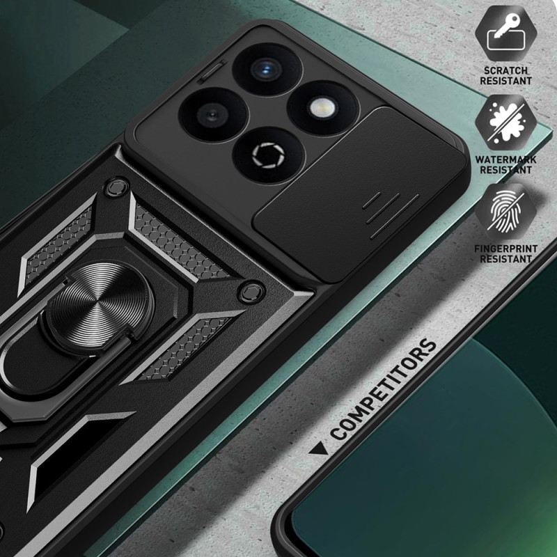 Protégez votre Honor X7c 5G / 4G / 200 Smart 5G avec style grâce à cette coque robuste dotée d'une protection caméra coulissante innovante et d'une béquille rotative multifonction. Conception anti-chocs de qualité militaire avec support magnétique intégré pour fixation voiture.