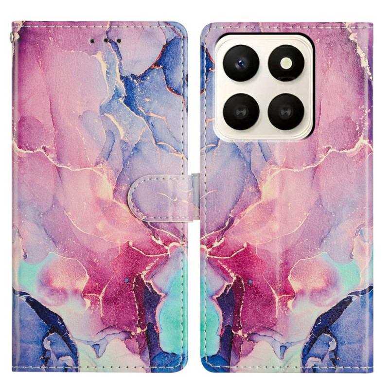 Protégez votre Honor X7d 5G avec style grâce à cet étui portefeuille élégant au motif marbre rose et vert. Design tout-en-un avec emplacements pour cartes, compartiment à billets et dragonne amovible pour un transport facile.
