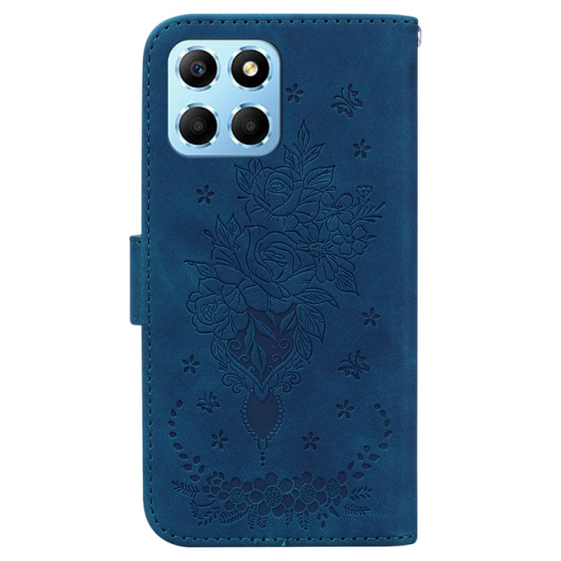 Protégez votre Honor X8 5G avec élégance grâce à cet étui portefeuille en cuir PU. Doté d'un magnifique motif papillon et rose gravé, il offre 2 emplacements pour cartes, un compartement latéral et une fonction support pratique pour visionner vos contenus.