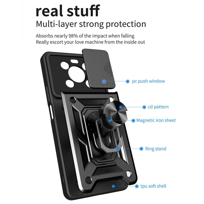 Protégez votre Honor X9 5G avec cette coque hybride PC + TPU offrant une résistance militaire aux chocs. Dotée d'un support rotatif intégré, d'une protection caméra coulissante et d'une compatibilité magnétique pour support voiture.