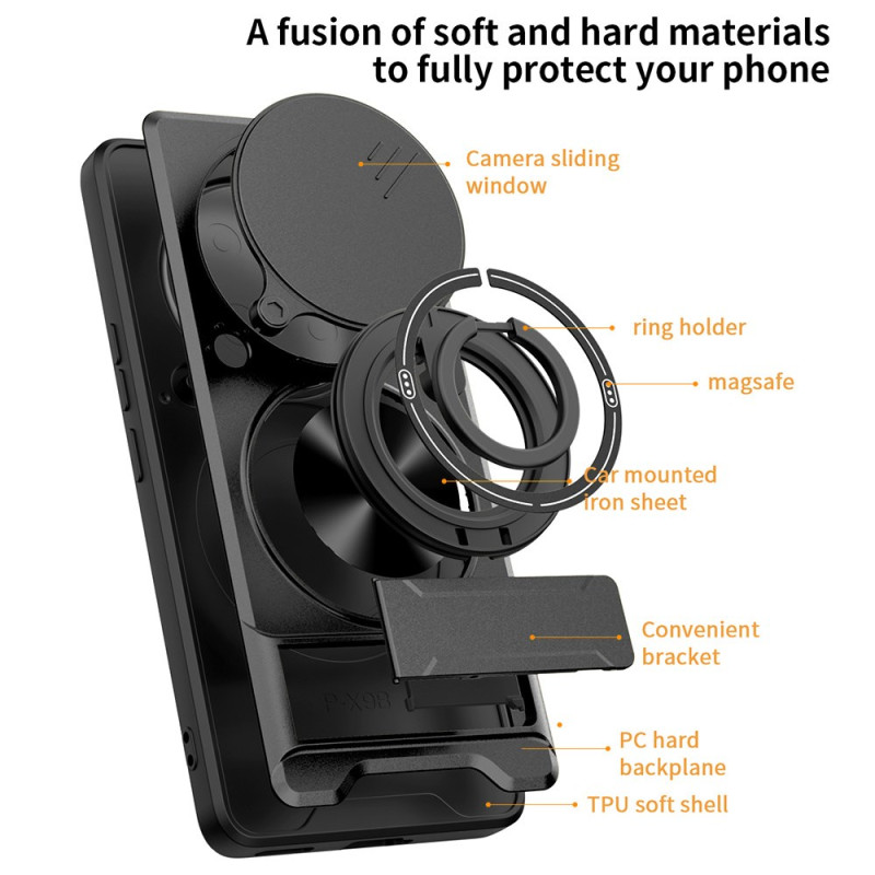 • Anneau Support et Béquille Pliable : Dispose d'un anneau support rotatif à 360° intégré pour une utilisation facile d'une seule main. La béquille pliable intégrée permet de basculer facilement entre les modes horizontal et vertical, parfait pour une utilisation mains libres.