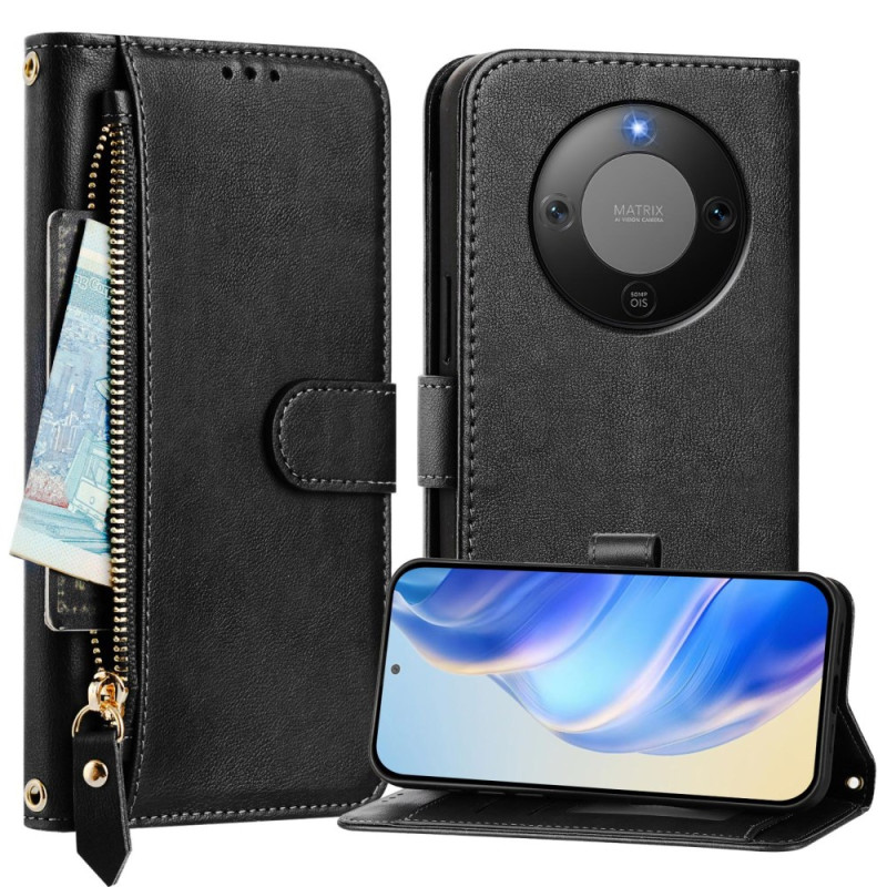 Étui multifonction en cuir premium avec multiples emplacements pour cartes, poche zippée frontale, support de visionnage intégré et fermeture magnétique sécurisée. Protection complète avec dragonne de transport pour votre Honor Magic 8 Lite / X9d.