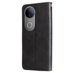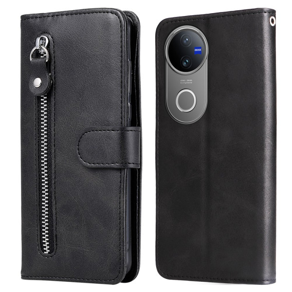 Étui portefeuille élégant pour Vivo V50 5G avec fermeture éclair sécurisée, multiples emplacements pour cartes et fonction support. Protection intégrale contre les chocs et rayures grâce à sa conception en cuir PU premium et coque TPU robuste.