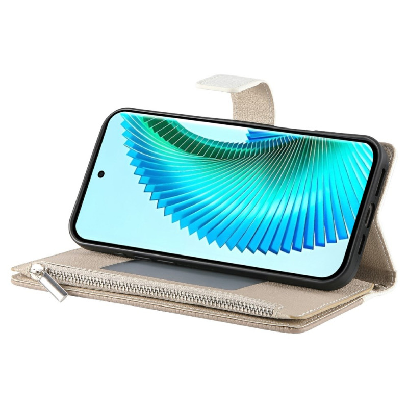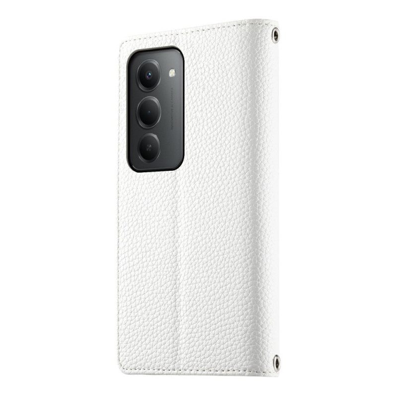 Étui portefeuille élégant et fonctionnel pour Xiaomi Redmi 15 4G. Offre une protection complète avec son cuir PU durable et son TPU résistant. Comprend des lanières pour un transport pratique, de multiples rangements pour cartes et argent, et une fonction support pour une visualisation mains libres.