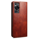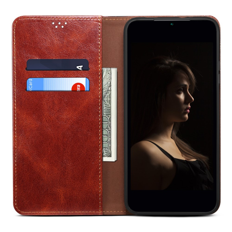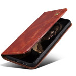 La flip cover en simili cuir ciré assure la protection de l'ensemble du Huawei P60 Pro au quotidien.