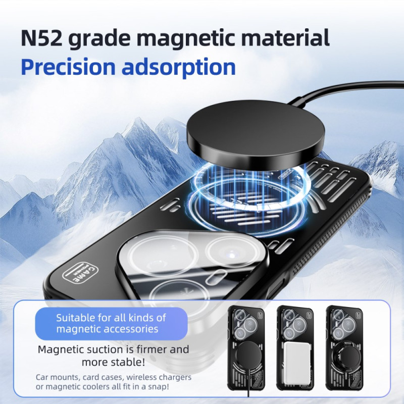 Protégez votre Huawei Pura 80 Ultra avec style grâce à cette coque magnétique innovante. Son design ajouré optimise la dissipation thermique tandis que l'anneau magnétique N52 assure une fixation puissante aux chargeurs sans fil et supports magnétiques.