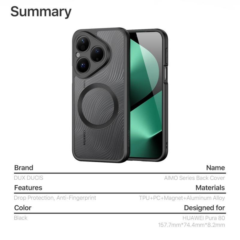 Protégez votre Huawei Pura 80 avec élégance grâce à cette coque DUX DUCIS certifiée REACH. Ultra fine et légère, elle offre une protection antichoc testée jusqu'à 1,2m tout en restant compatible MagSafe pour une recharge sans fil optimale.