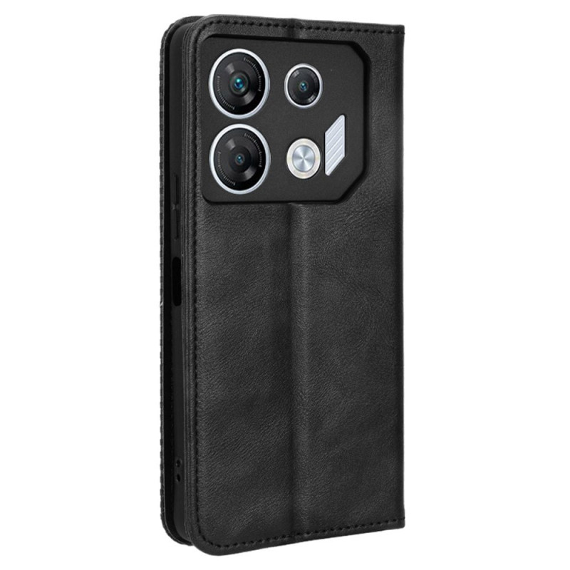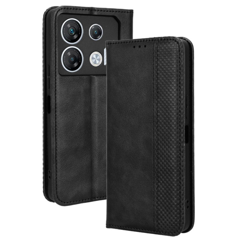 Protégez votre Infinix GT 10 Pro 5G X6739 avec style grâce à cet étui élégant à fermeture magnétique. Doté de multiples emplacements pour cartes, d'un support ajustable et d'une bordure mosaïque gravée unique, il allie fonctionnalité et design raffiné.