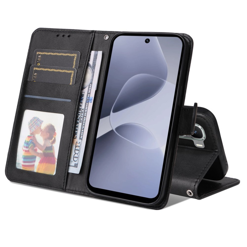 Étui portefeuille élégant pour Infinix Hot 60 Pro 4G avec compartiments pour cartes, fonction support et fermeture magnétique sécurisée. Protection complète à 360° grâce à sa coque intérieure renforcée. Dragonne incluse pour un transport facile.