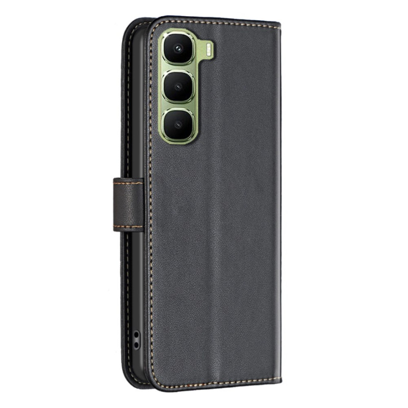 Étui portefeuille multifonction pour Infinix Hot 60 Pro 4G avec support réglable, fermeture magnétique sécurisée et multiples emplacements pour cartes. Protection intégrale contre les chocs et les rayures avec rebord surélevé pour l'écran et la caméra.