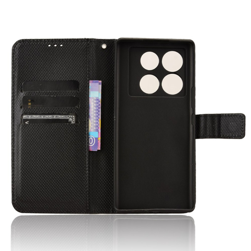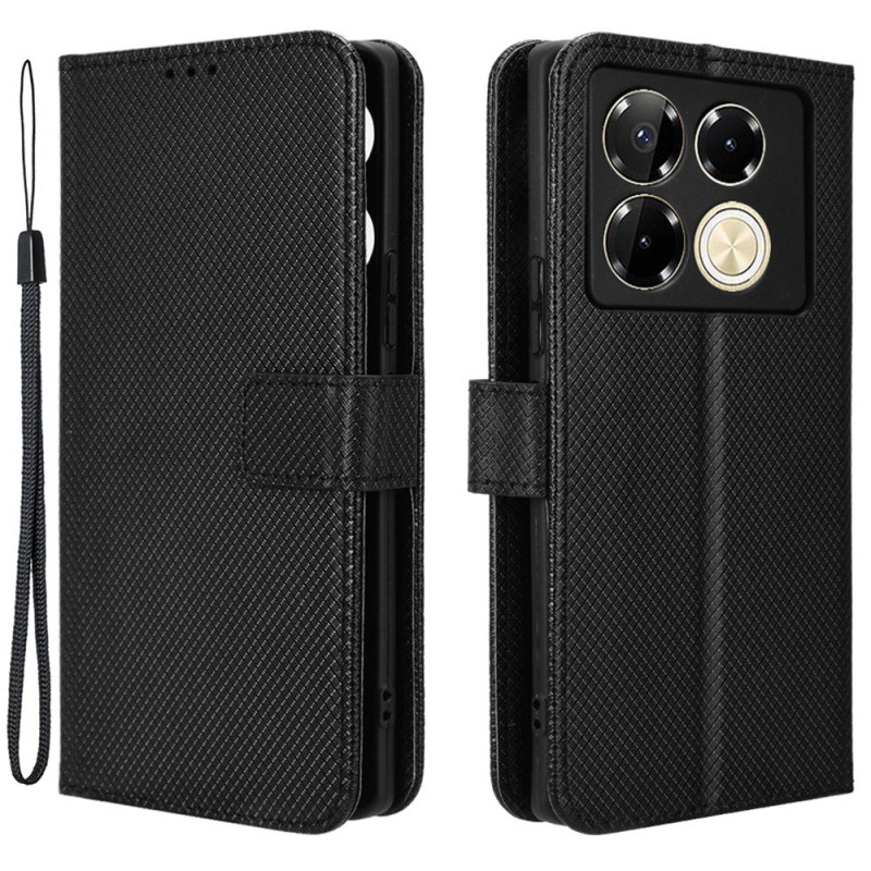 Étui portefeuille élégant avec texture diamant pour votre Infinix Note 40 5G. Doté de multiples emplacements pour cartes, d'un support intégré et d'une fermeture magnétique sécurisée. Protection complète et style raffiné pour un usage quotidien.