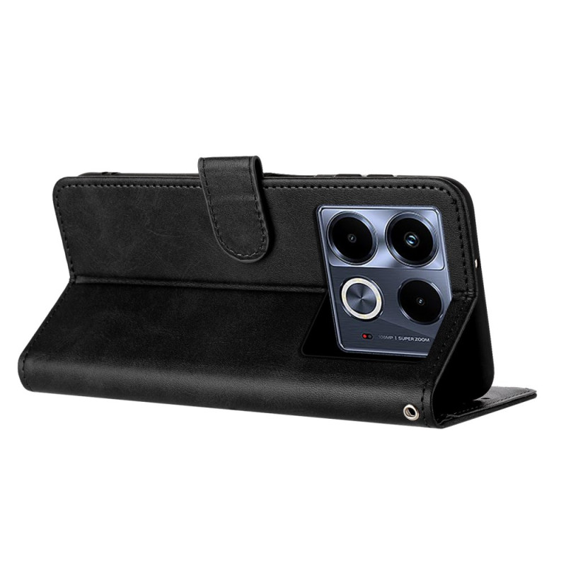 Étui portefeuille élégant pour Infinix Note 40 5G offrant une protection complète. Design rabattable avec 3 emplacements pour cartes, poche pour billets et fermeture magnétique sécurisée. Fonction support pour visionnage mains libres et dragonne détachable...