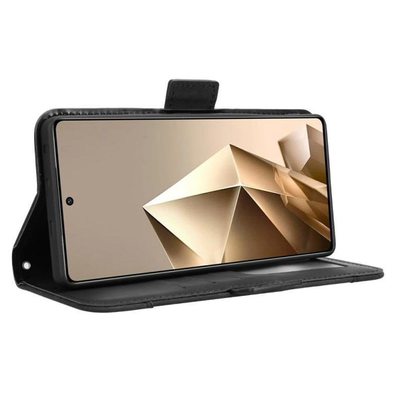 Étui portefeuille élégant pour Infinix Note 50 4G / Note 50 Pro 4G. Combinez style et praticité avec de multiples emplacements pour cartes, un porte-monnaie intégré et un porte-cartes détachable. Protection intégrale contre les chocs et les rayures.