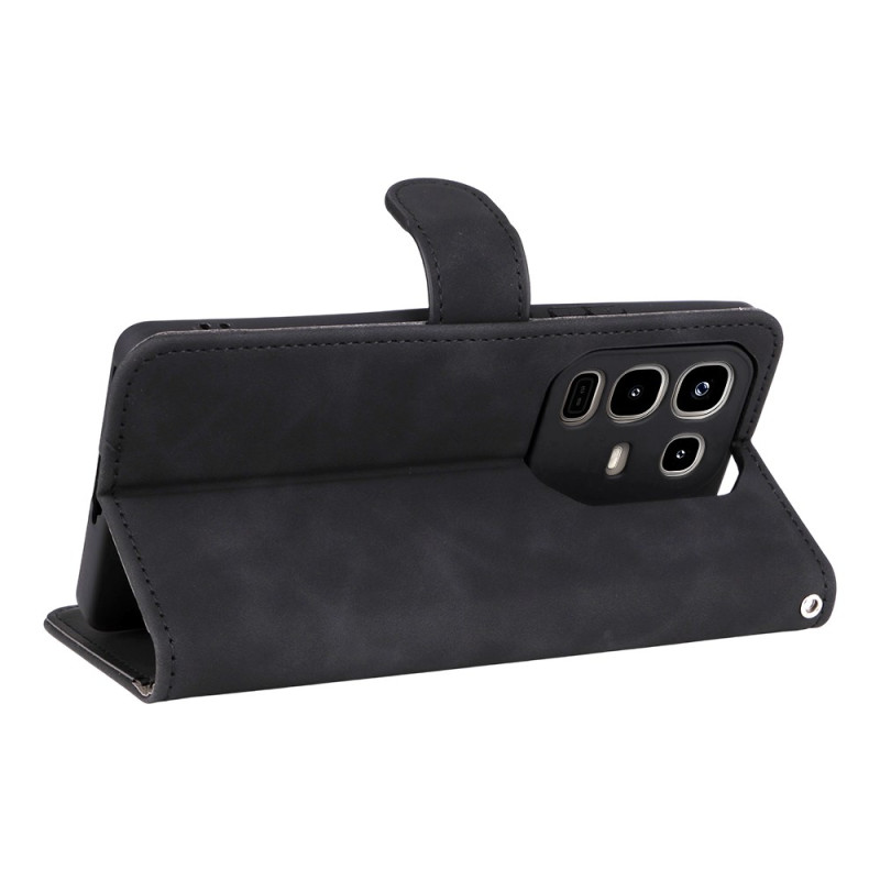 Étui portefeuille élégant en cuir PU avec toucher peau pour votre Infinix Note 50 Pro 4G. Doté de 2 fentes pour cartes, 1 poche pour billets et un support ajustable. Protection complète contre les chocs et les rayures avec dragonne pratique.