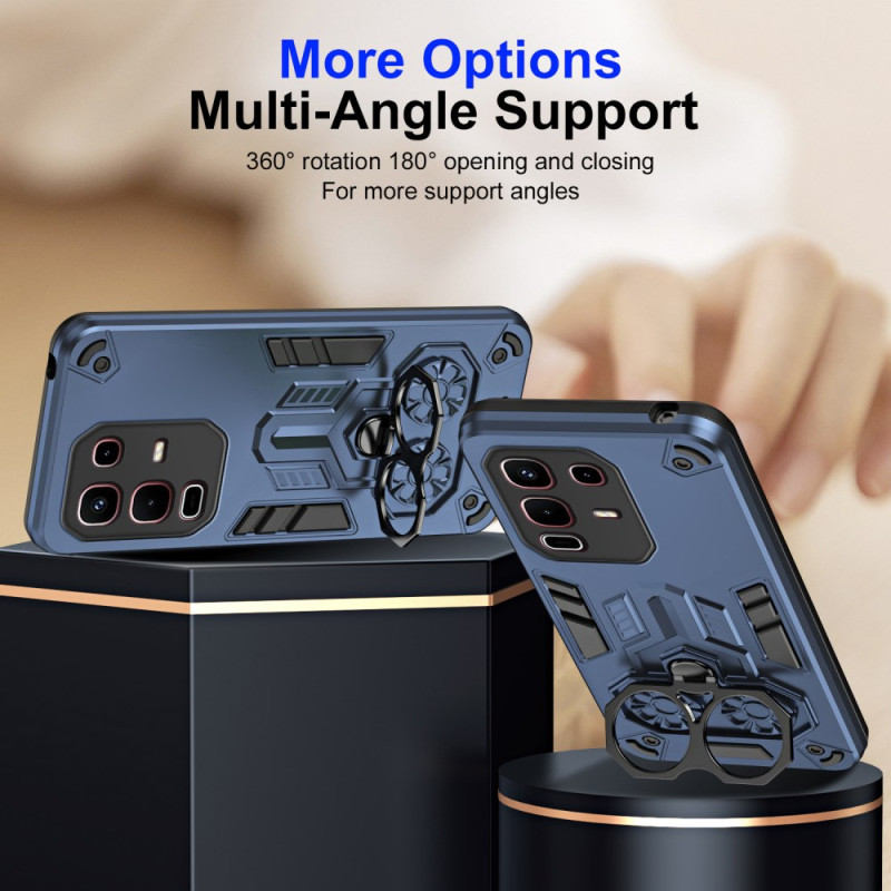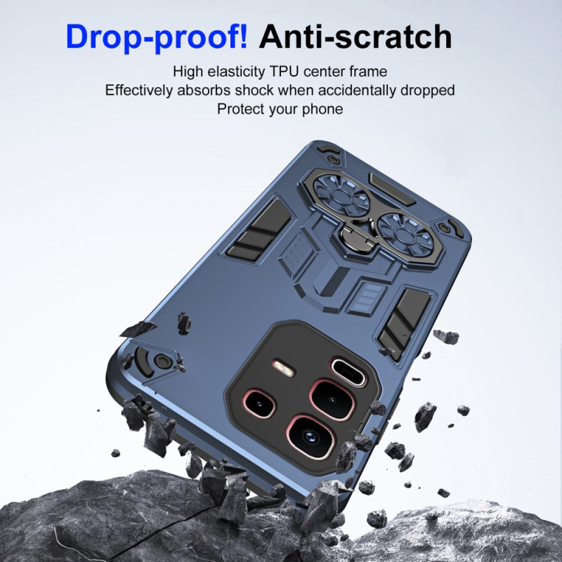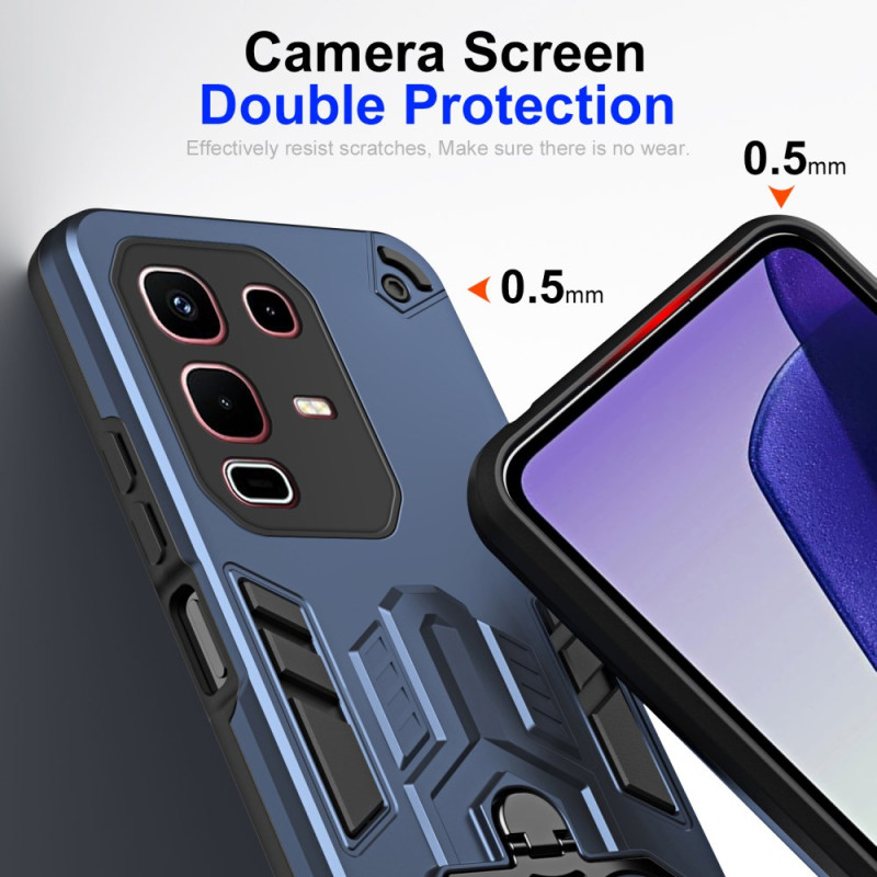 Protégez votre Infinix Note 50S 5G avec cette coque hybride résistante. Elle combine TPU souple et PC rigide, intègre un anneau support rotatif à 360° et une béquille réglable. Protection optimale contre les chocs et les rayures au quotidien.