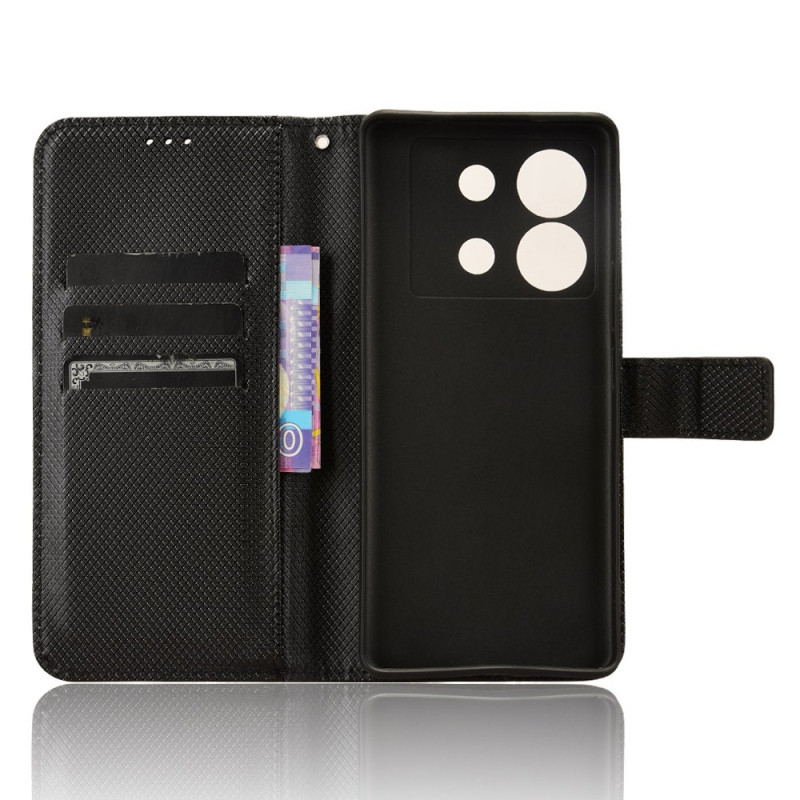 Protégez votre Infinix Zero 30 5G X6731 avec élégance grâce à cet étui portefeuille en cuir PU premium. Design texture diamant sophistiqué, multiples fentes pour cartes, poche pour espèces et fermeture magnétique sécurisée. Fonction support pliable intégrée pour un visionnage mains libres optimal.