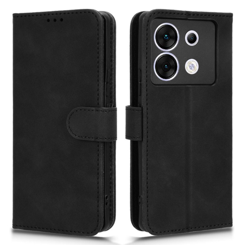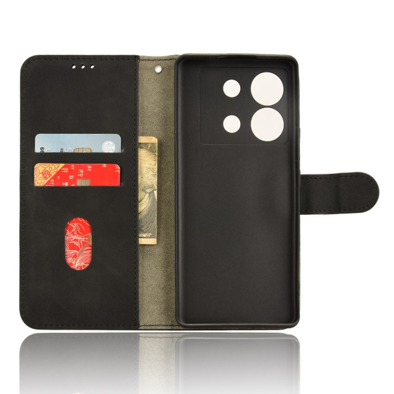 Étui portefeuille élégant pour Infinix Zero 30 5G avec finition toucher doux. Doté de 2 emplacements pour cartes, 1 poche pour espèces et un fermoir magnétique sécurisé. Support réglable intégré pour une utilisation mains libres optimale.