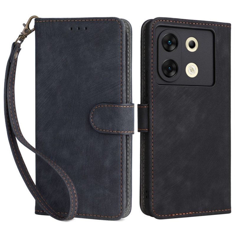 Étui portefeuille en cuir PU premium pour Infinix Zero 30 5G avec protection RFID intégrée. Dispose de 3 emplacements pour cartes, 1 poche pour espèces, fonction support mains libres et dragonne pratique. Fermeture magnétique sécurisée pour une protection complète de votre smartphone au quotidien.