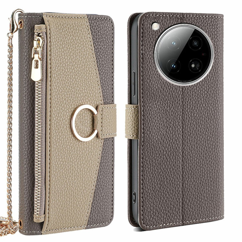 Étui portefeuille élégant pour Infinix Zero 40 4G avec miroir intégré et bandoulière chaîne. Combine protection premium et fonctionnalité avec 3 emplacements pour cartes, compartiment à billets et poche zippée.