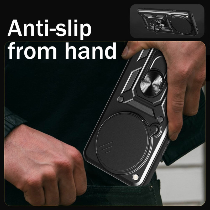 Protégez votre Infinix Zero 40 4G avec cette coque robuste dotée d'une protection caméra coulissante, d'une béquille rotative à 360° et d'une résistance militaire aux chocs. Compatible support magnétique pour voiture.
