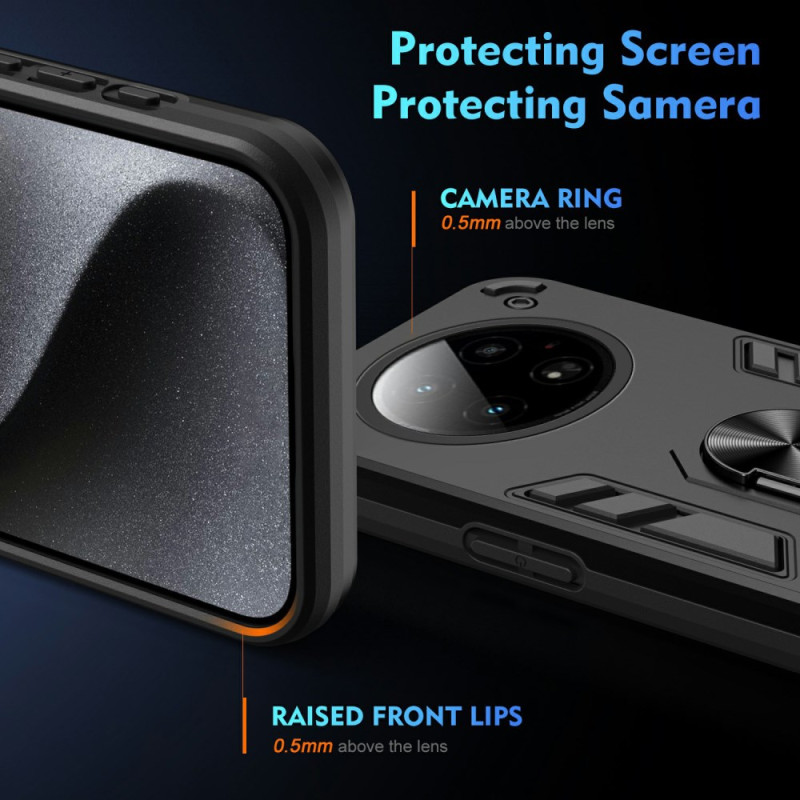 Protection robuste en PC+TPU pour votre Infinix Zero 40 4G. Anneau support ajustable à 360°, bords surélevés pour protéger l'écran et la caméra, compatible support voiture magnétique. Design ergonomique avec accès précis à toutes les fonctionnalités.