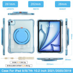 Découvrez notre coque polyvalente pour iPad Air 11 (2025) (2024)/Air (2022) (2020)/ Pro 11 (2022) (2021) (2020) (2018), dotée d'une poignée rotative à 360°, d'une protection intégrale du corps, de coins absorbant les chocs, d'un support réglable, d'un dos en acrylique transparent et d'une bandoulière en nylon réglable.