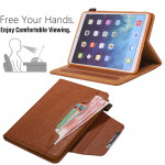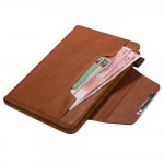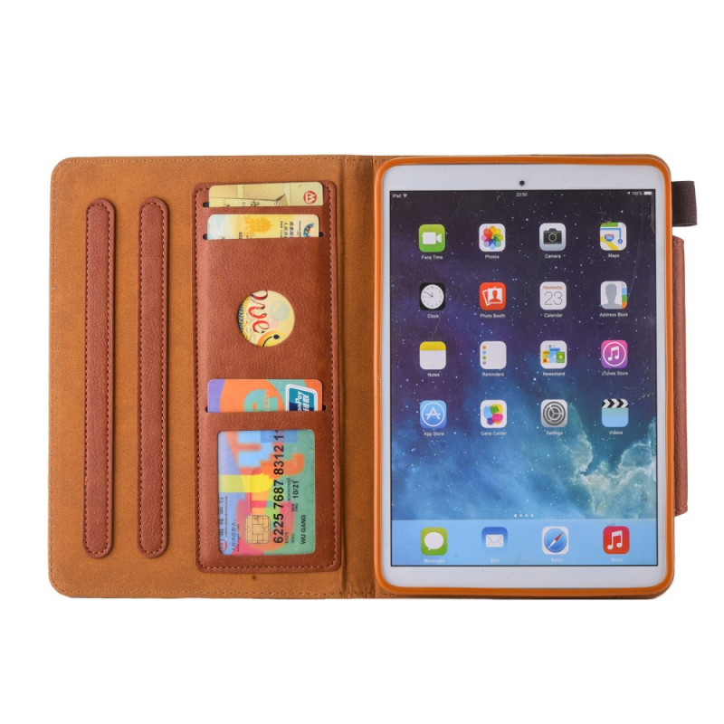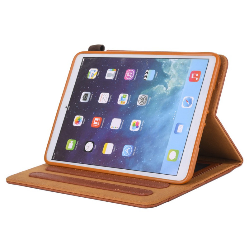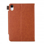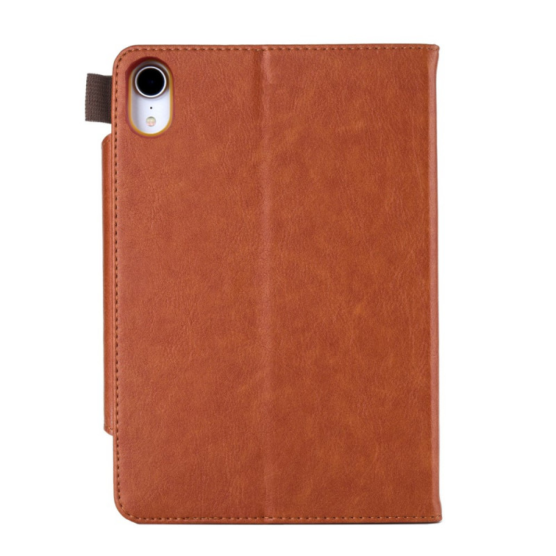 Une housse pour iPad Mini 7 (2024) / Mini 6 (2021) en simili cuir et munie d'un fermoir argenté.