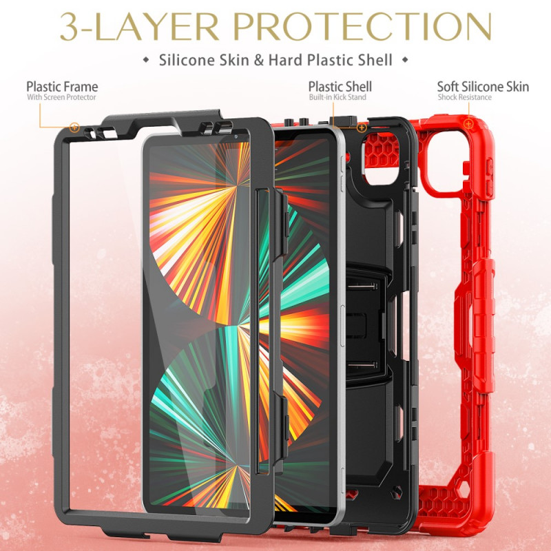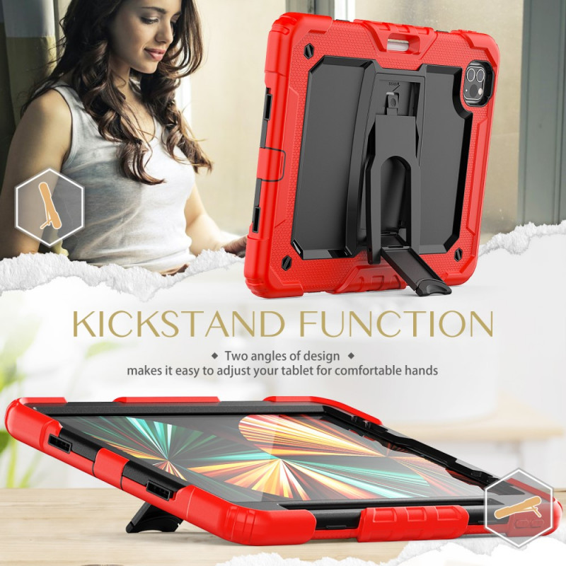Cette coque super résistante avec support amovible protège parfaitement votre iPad Pro 11" (2022) (2021) (2020) (2018) au quotidien.