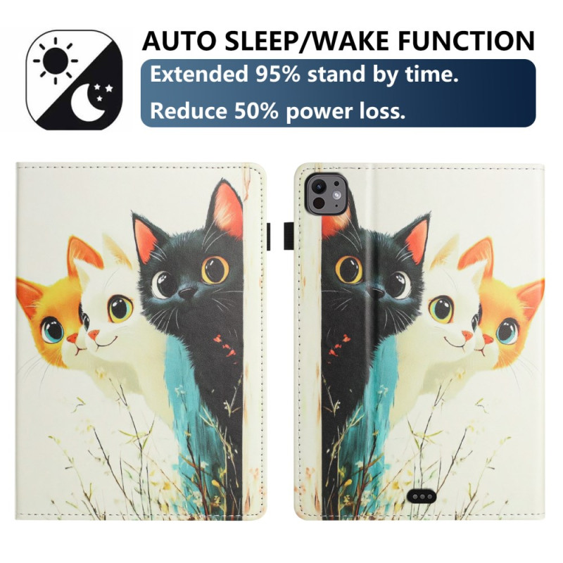 Découvrez notre étui élégant pour iPad Pro 11 (2025) / 11 (2024) avec un motif unique de trois chats. Fabriqué en cuir PU texturé de haute qualité, il offre une protection complète avec fonction auto-réveil, support multi-angle et rangement pour cartes. Son design pratique inclut une boucle pour stylet et une fenêtre d'identification, alliant style et fonctionnalité pour votre tablette.