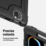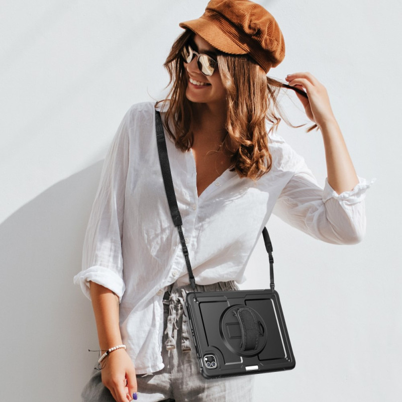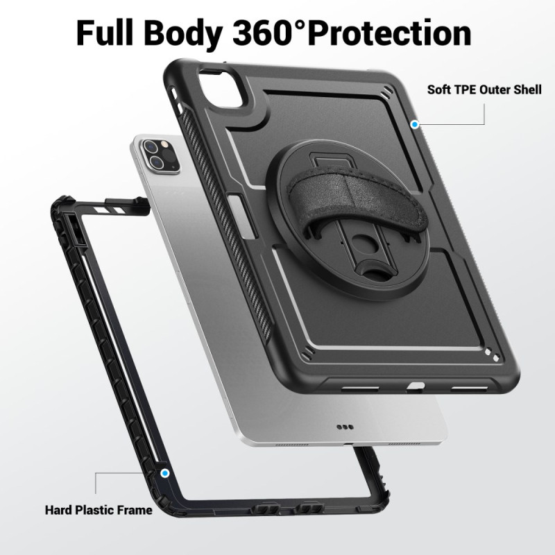 Découvrez notre étui robuste pour iPad Pro 11 (2025) / 11 (2024) avec support pivotant à 360°, dragonne ajustable et bandoulière détachable. Fabriqué en PC et TPE, il offre une protection exceptionnelle contre les rayures et les chocs. Le support rotatif permet une utilisation polyvalente, tandis que la dragonne assure une prise en main confortable et sûre.
