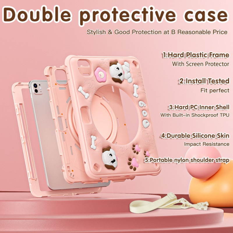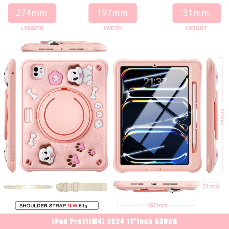 Découvrez notre étui adorable et fonctionnel pour iPad Pro 11 (2025) / 11 (2024). Avec son motif de chien mignon, son support intégré et sa sangle d'épaule, il allie style et praticité. La protection multicouche et les coins renforcés assurent une sécurité optimale pour votre tablette. Idéal pour les enfants et les adultes, cet étui polyvalent vous accompagne partout.