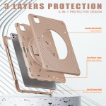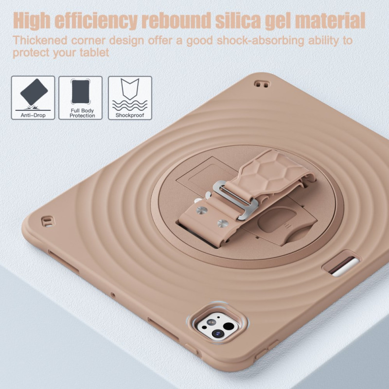 Coque robuste pour iPad Pro 13 (2025) / 13 (2024) offrant une protection multicouche avec cadre en PC, coque en TPU et silicone. Dotée d'un support rotatif à 360°, de coins renforcés et d'une dragonne ajustable pour une utilisation confortable. Ports de charge parfaitement alignés pour une connexion sans entrave.
