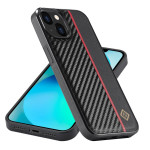 Protégez votre iPhone 13 mini avec style grâce à cette coque premium au design fibre de carbone élégant. Sa construction bicouche offre une absorption des chocs supérieure tandis que la bande rouge distinctive ajoute une touche moderne et raffinée.
