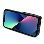 Étui multifonction élégant pour iPhone 13 mini combinant protection renforcée, porte-cartes zippé sécurisé et support intégré. Livré avec une bandoulière ajustable pour un transport pratique au quotidien.
