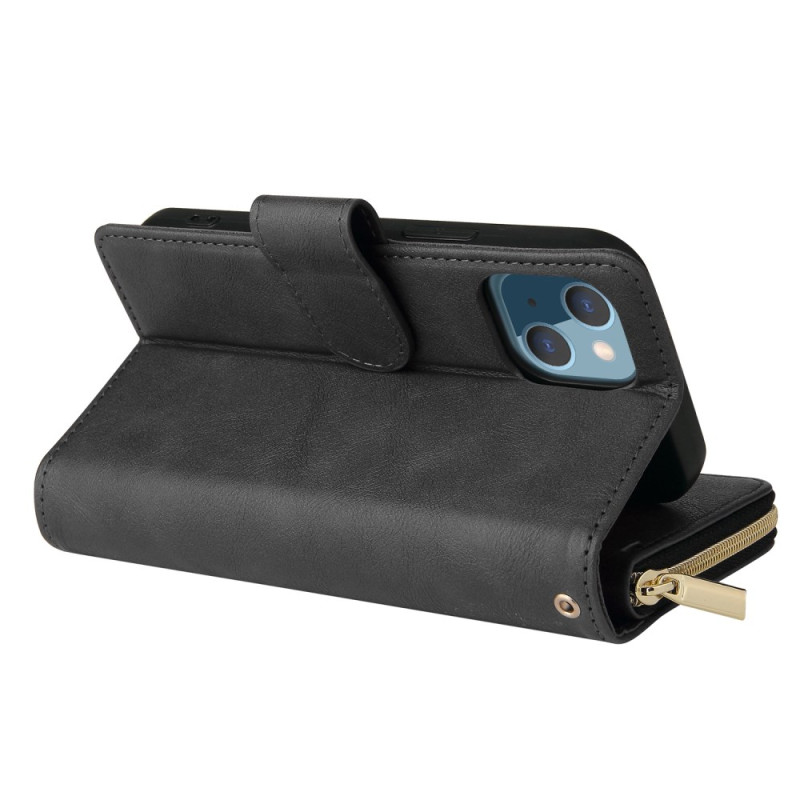 Étui portefeuille multifonction pour iPhone 13 Mini avec 9 emplacements pour cartes, poche zippée, fermeture magnétique sécurisée et support de visionnage. Doté d'une dragonne pratique pour un transport facile au quotidien.